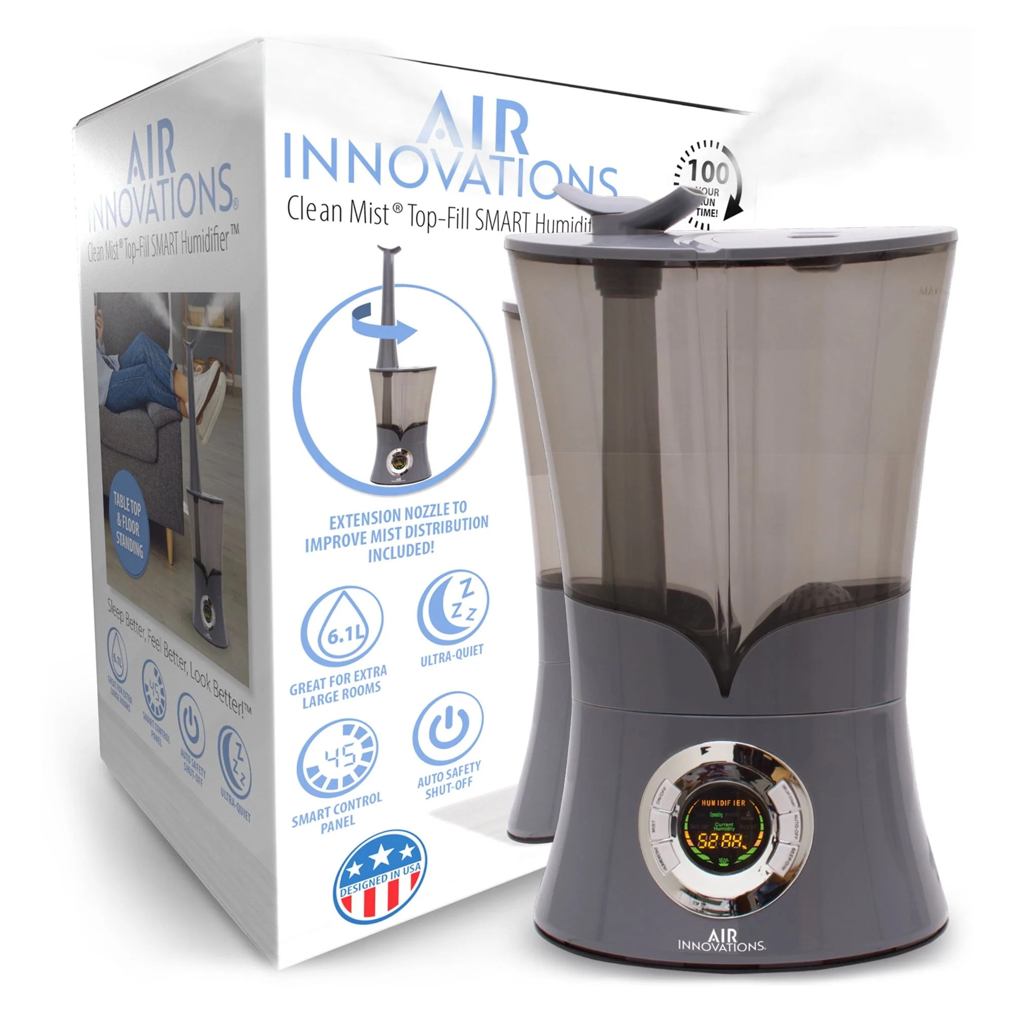 Air Innovations 700sq ft Ultrasonic Cool Mist Top Fill Humidifier, Platinum